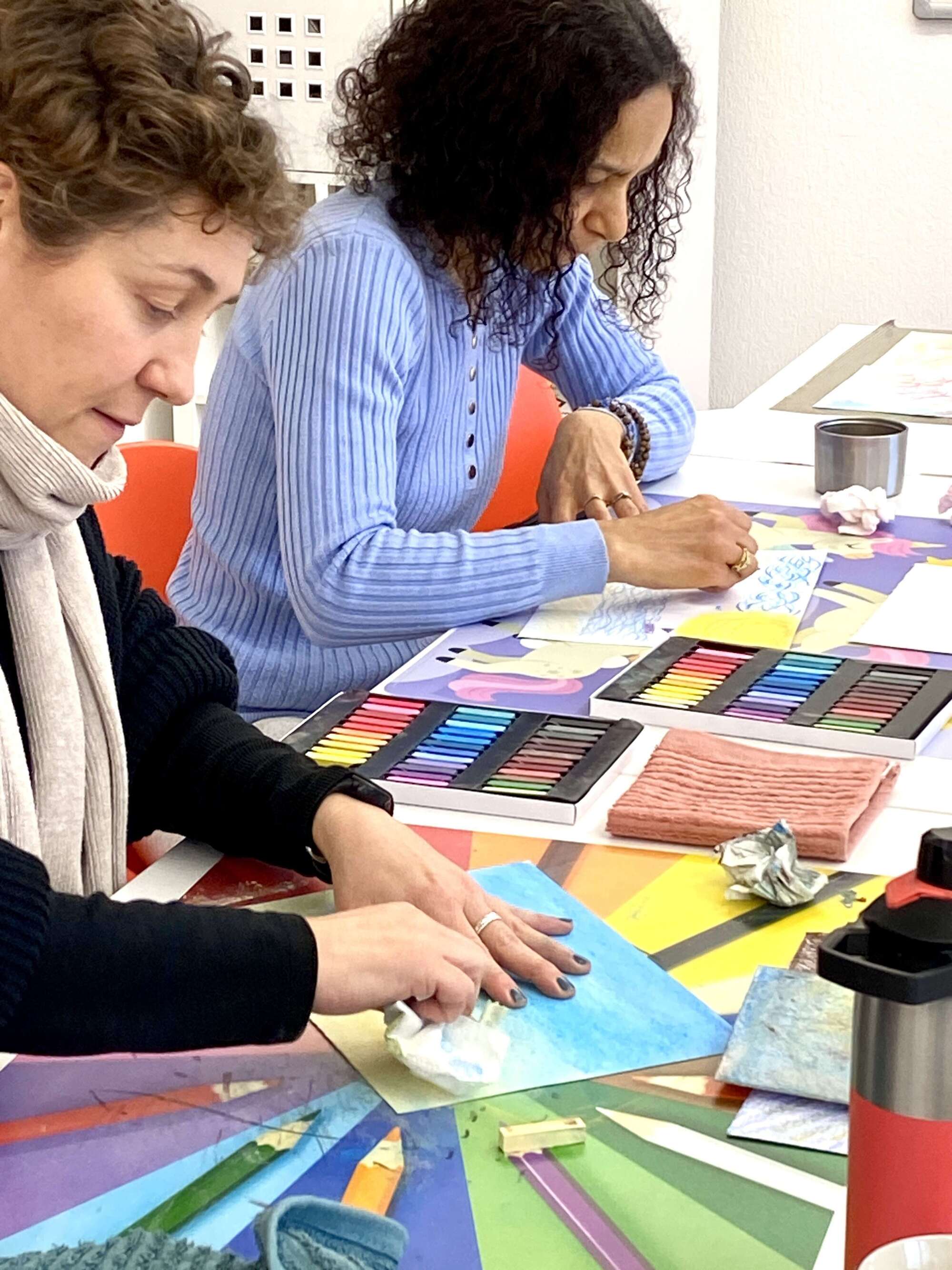 Venez vous immerger dans un espace créatif intimiste (8 personnes au maximum) , joyeux, bienveillant, et surtout hors du temps ! A chaque séance, un thème différent : ressentir et transformer vos émotions, oser aller de l'avant, connecter à votre être profond, ressentir l'énergie de vos couleurs, dépasser les blocages, etc.